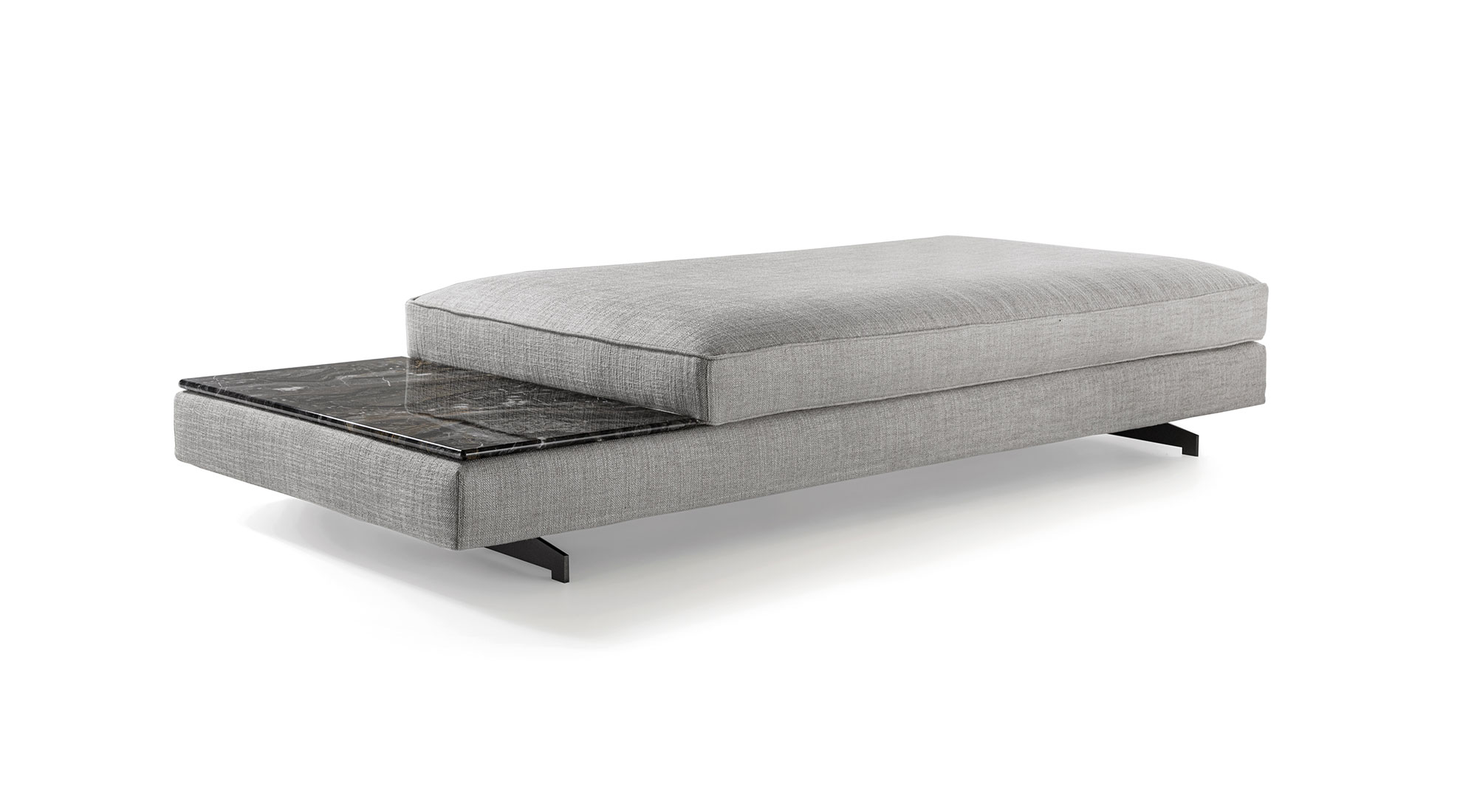 The Davis system features an extensive range of modular elements with the possibility of personalizing your sofa thanks to the option of choosing between five types of feet: model L, R, P, M and T in metal all available in different finishes and the model T in black sable metal with end tip in gold colour.