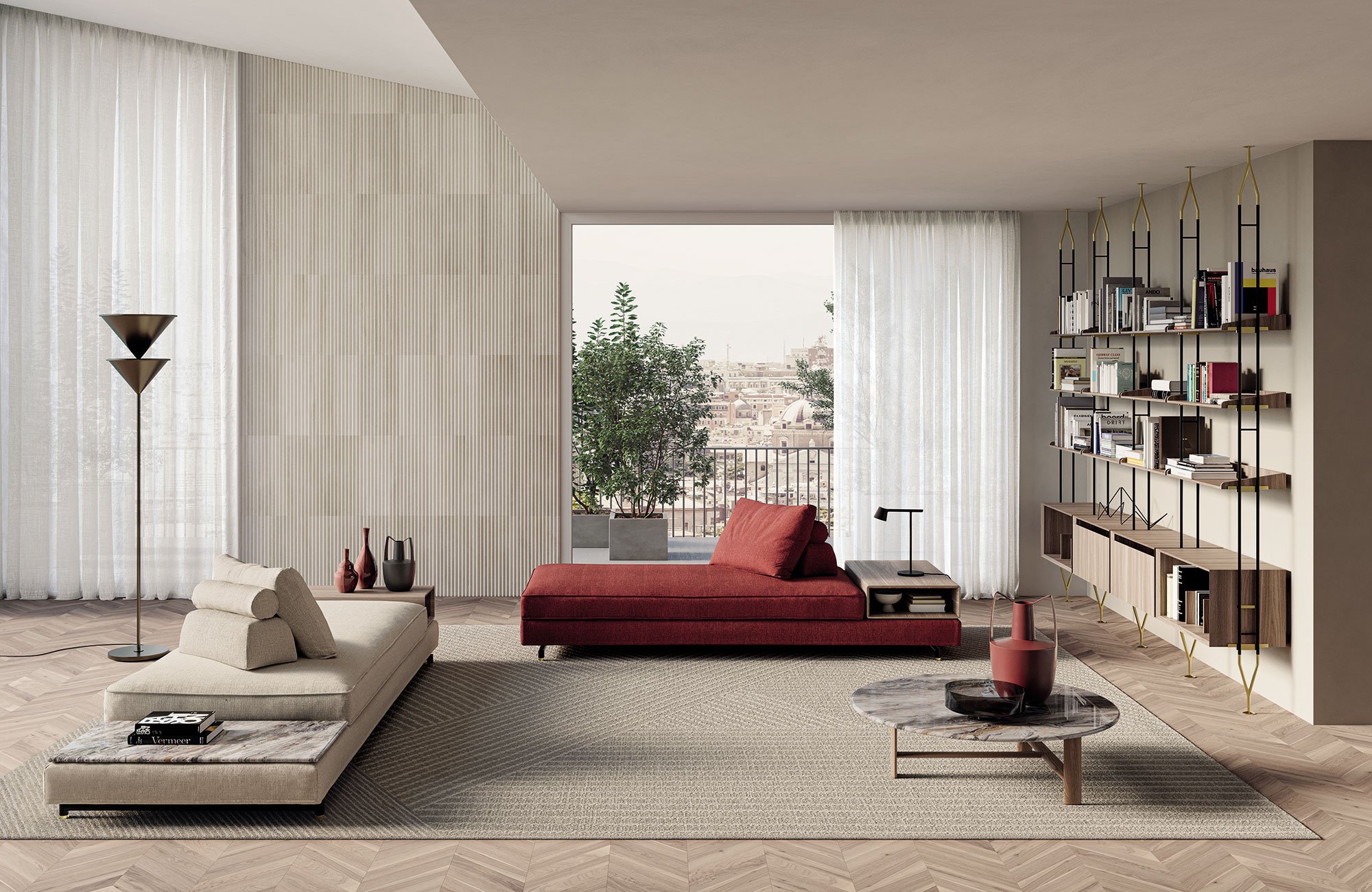 The Back element from the Davis collection is an innovative modular element, which allows to solve corner situation by using the space at the best and by granting the unbeatable comfort of the collection.