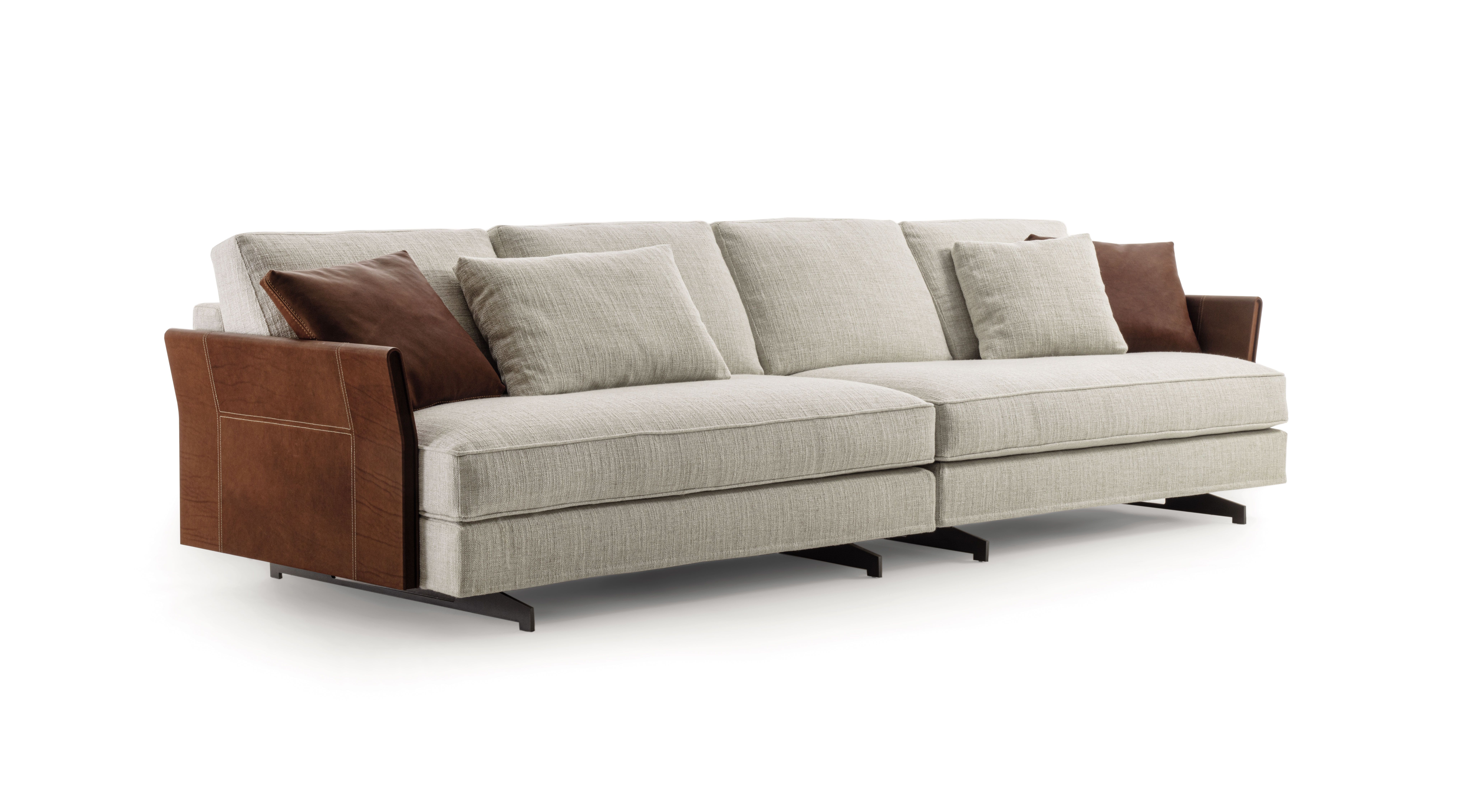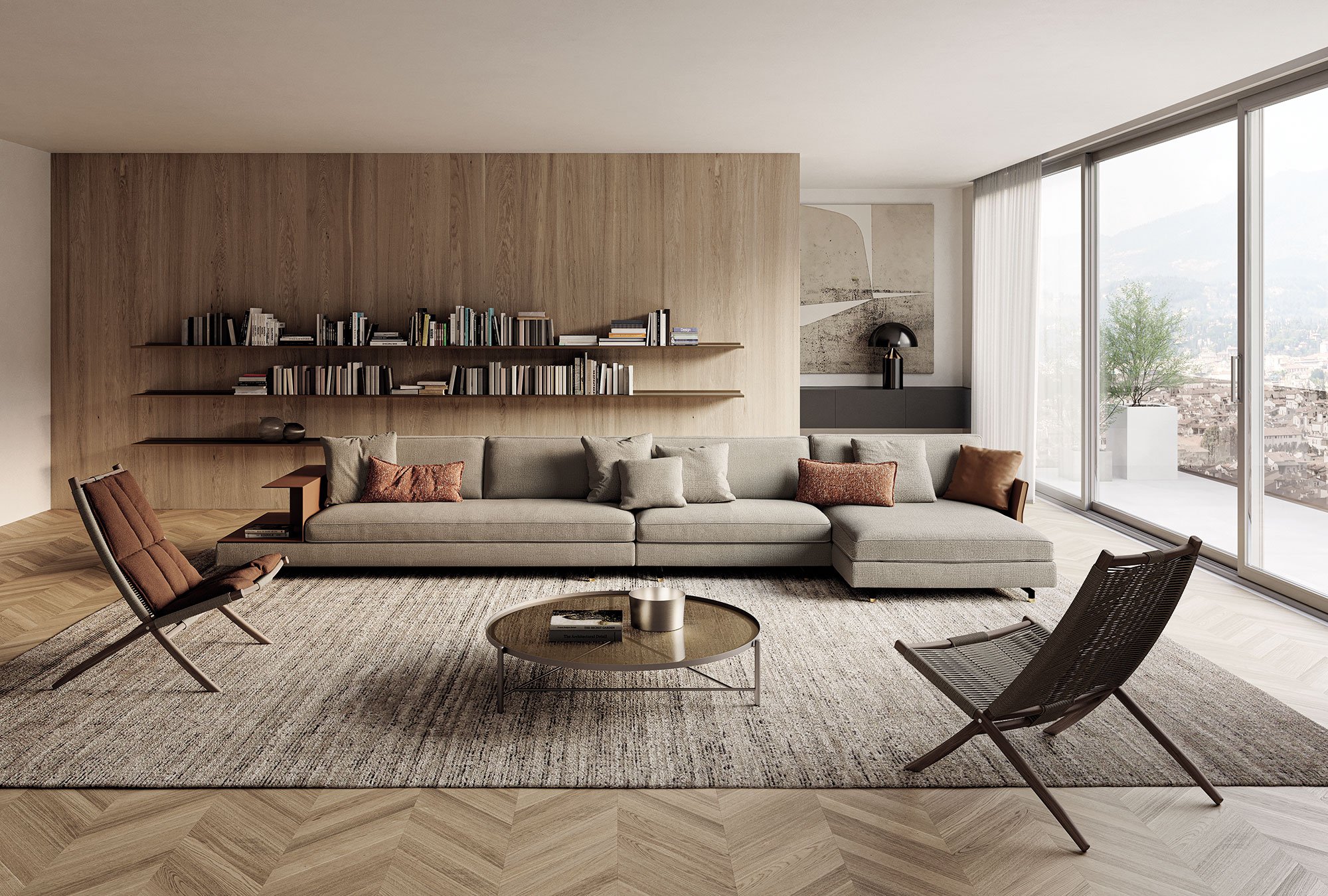 Il divano Davis è caratterizzato da un cuscino schienale “patent pending” con movimento integrato, che nella versione rialzata incrementa lo spazio di seduta donando maggior comfort.