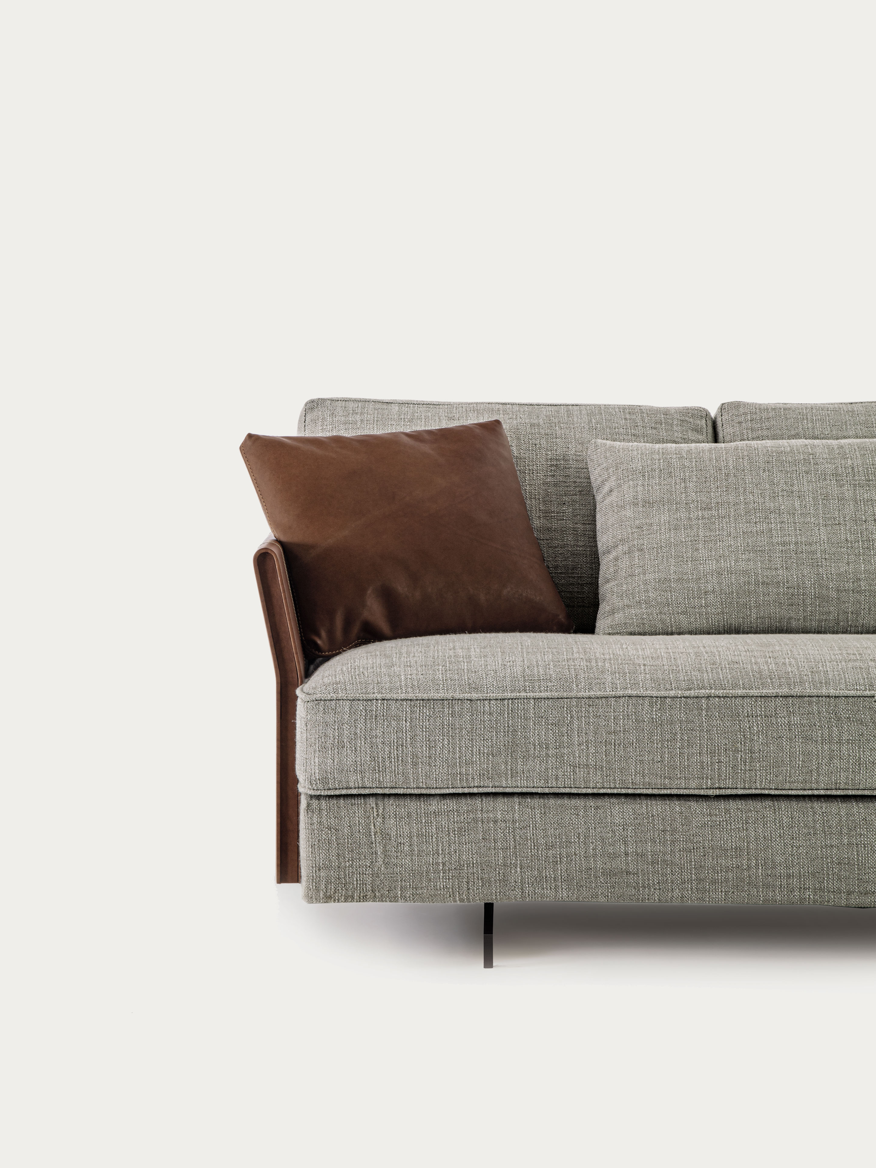 VERSIONE DAVIS SLIM: bracciolo con struttura in legno multistrato ricoperto esclusivamente in pelle, non sfoderabile, coordinato con un cuscino in piuma d’oca (Assopiuma). Larghezza bracciolo 8cm.