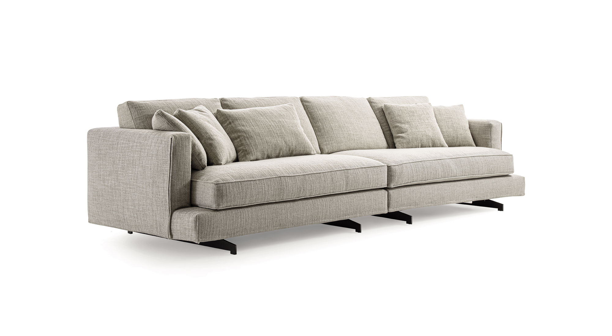 Il sistema Davis si caratterizzata da un’estesa gamma di elementi componibili con la possibilità di personalizzare il proprio divano grazie alla possibilità di poter scegliere fra cinque tipologie di piedini: il piedino modello L, R, P, M e T in metallo disponibili in differenti finiture e il modello T in metallo in nero sablé con puntale color oro.